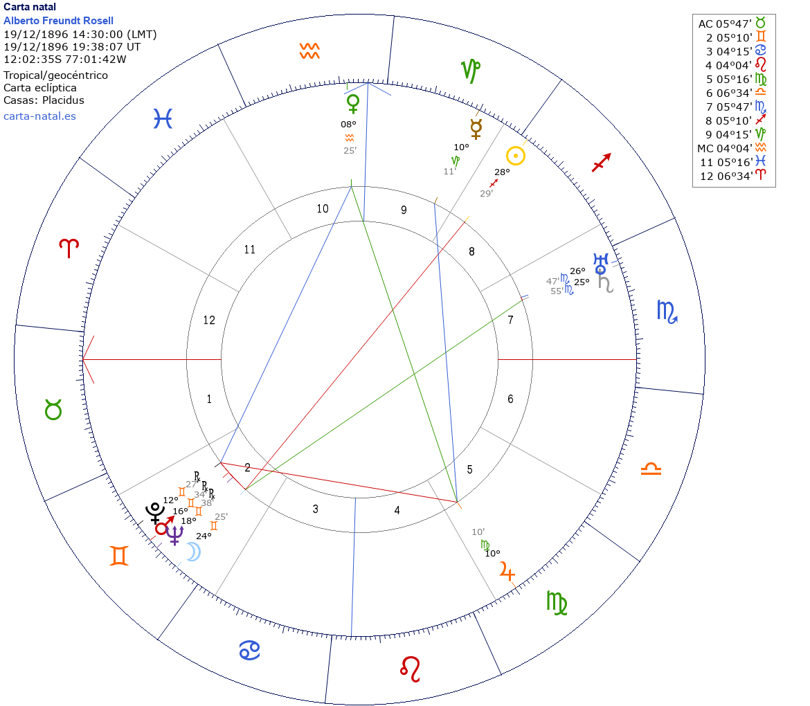Alberto Freundt Rosell nació el 19 de Diciembre de 1896 a las 14:30:00 en Lima (Lima), Perú