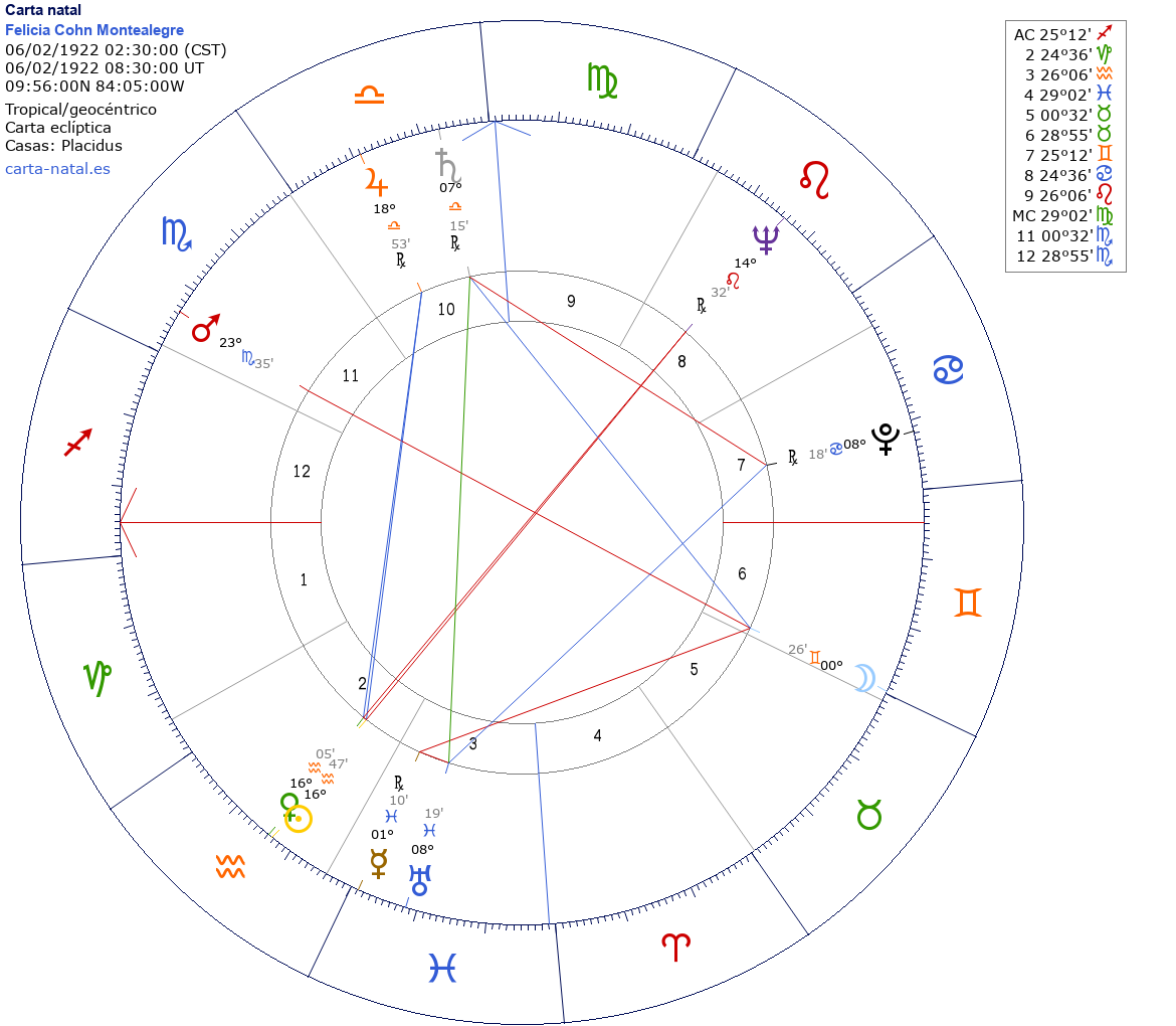 Esta es la carta natal de Felicia Cohn Montealegre, actriz de teatro y televisión chilena.