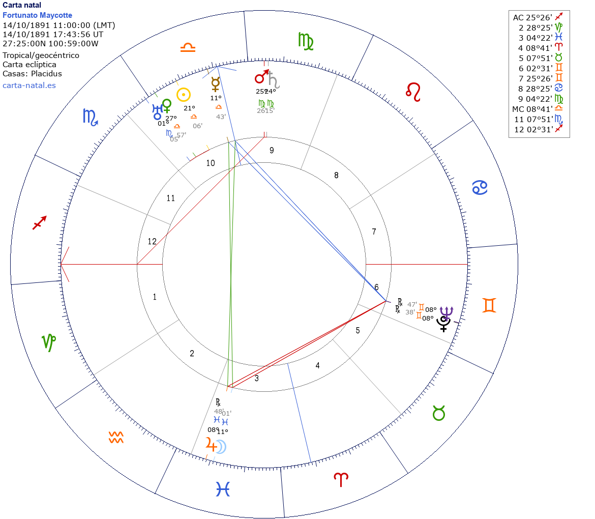 Fortunato Maycotte nació el 14 de Octubre de 1891 a las 11:00:00 en Progreso (Coahuila), México