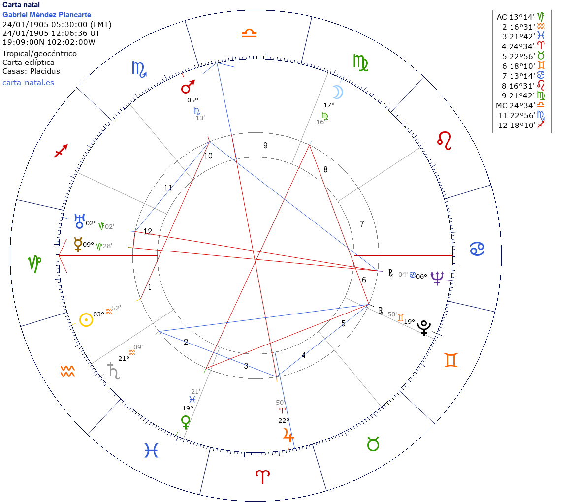 Gabriel Méndez Plancarte nació el 24 de Enero de 1905 a las 05:30:00 en Gabriel Zamora (Michoacán), México