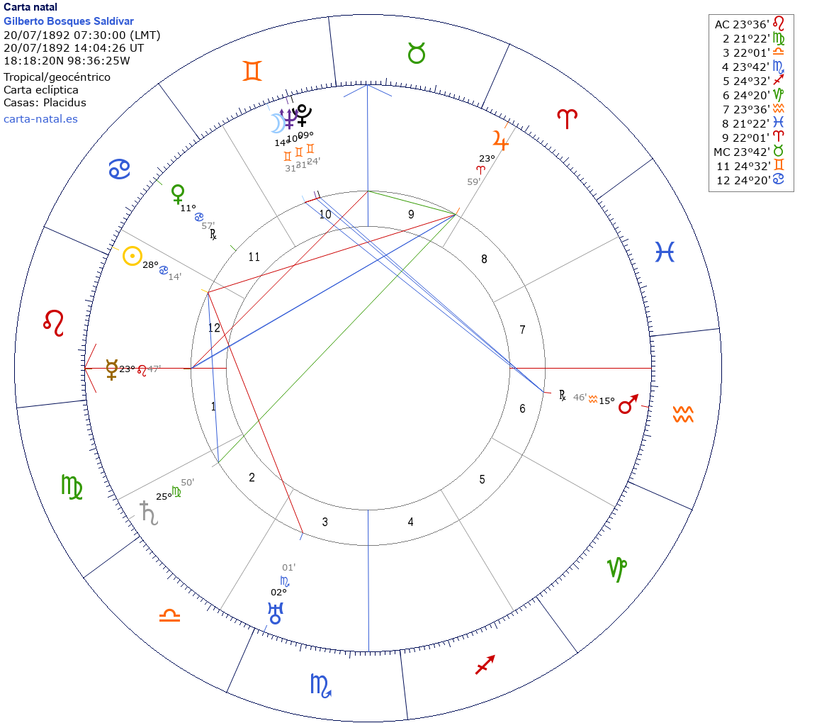Gilberto Bosques Saldívar nació el 20 de Julio de 1892 a las 07:30:00 en Chiautla de Tapia (Puebla), México
