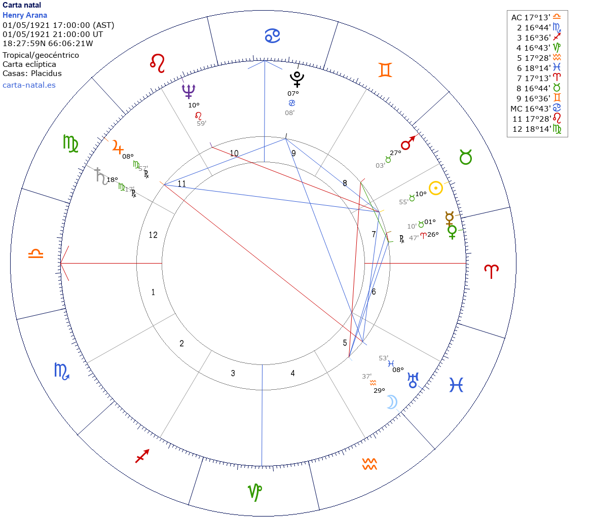 Henry Arana nació el 1 de Mayo de 1921 a las 17:00:00 en San Juan (San Juan), Puerto Rico