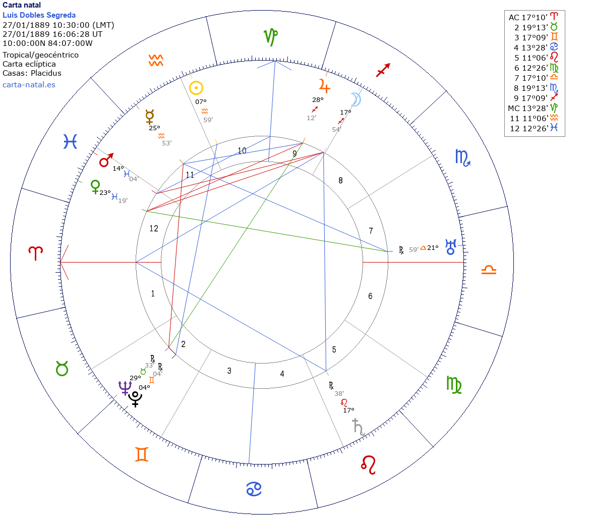 Luis Dobles Segreda nació el 27 de Enero de 1889 a las 10:30:00 en Heredia (Heredia), Costa Rica