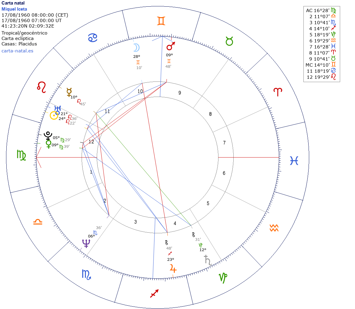 | Casa 1 (AC) | Virgo16°27'54" |