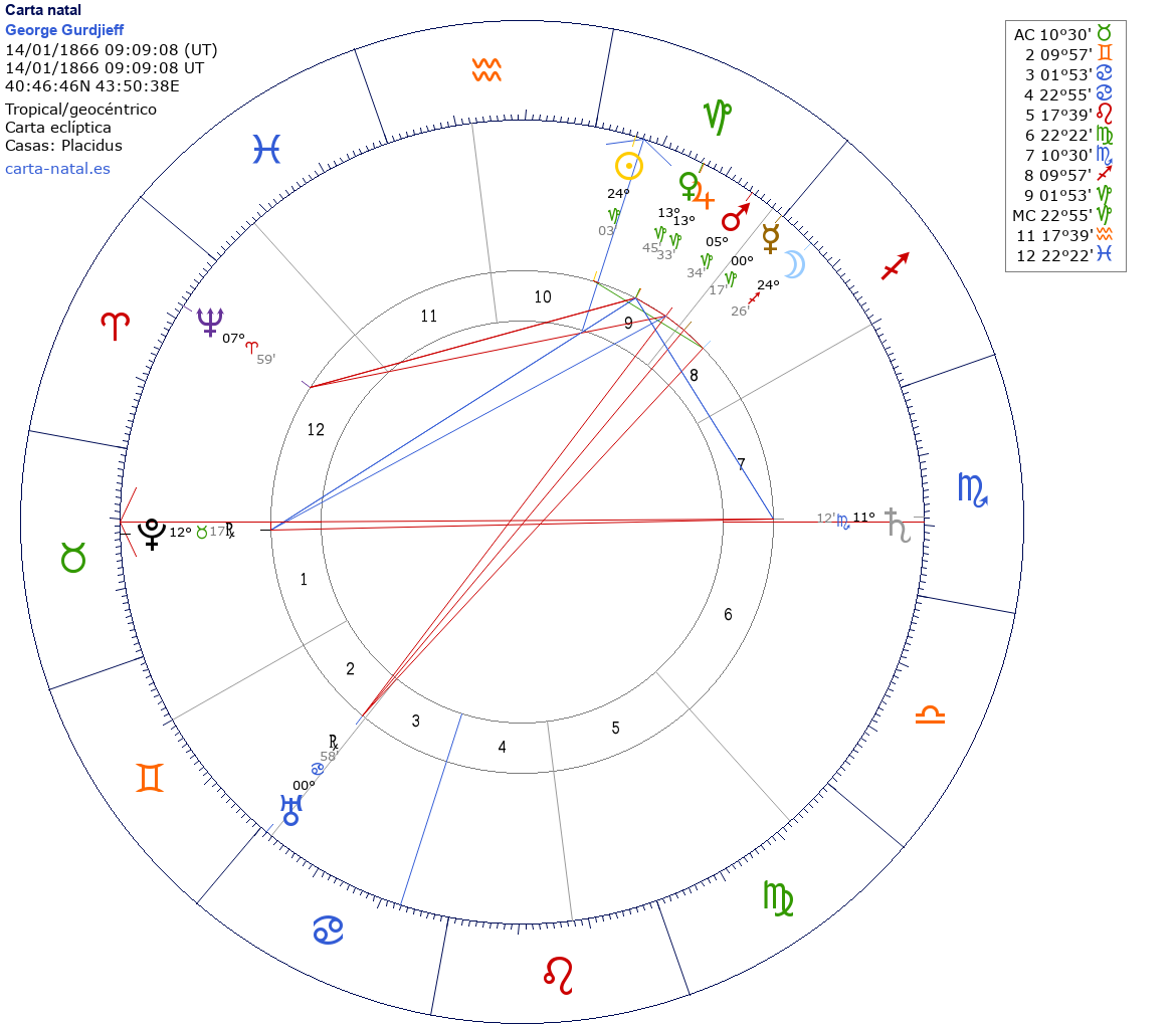 Esta es la carta natal de George Ivánovich Gurdjieff, maestro místico, escritor y compositor ruso.