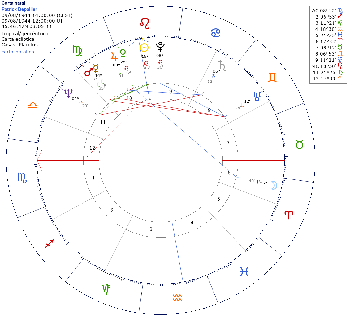 Esta es la carta natal de Patrick Depailler, piloto de Formula 1 francés.
