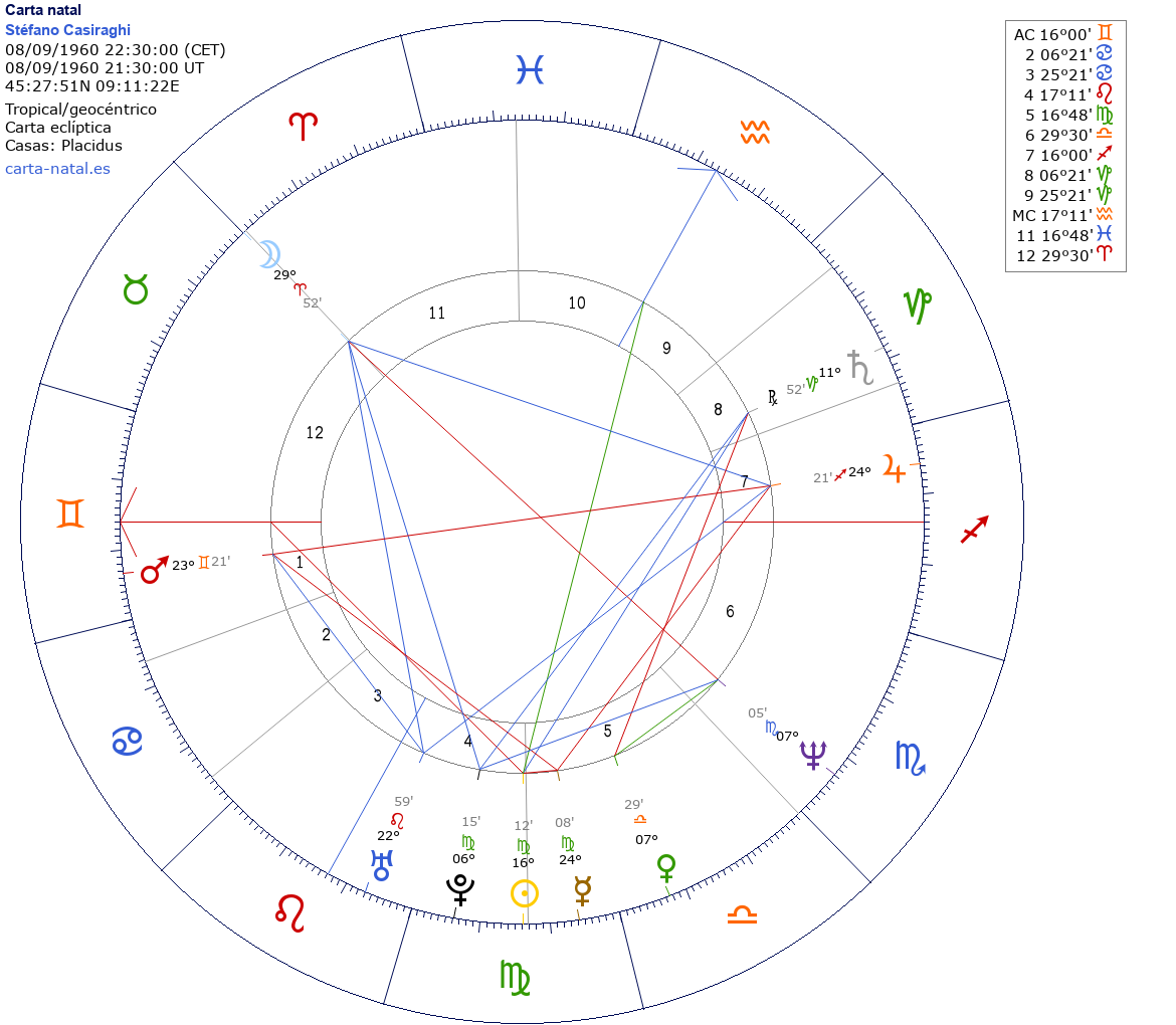 Esta es la carta natal de Stéfano Casiraghi, aristócrata italiano.
