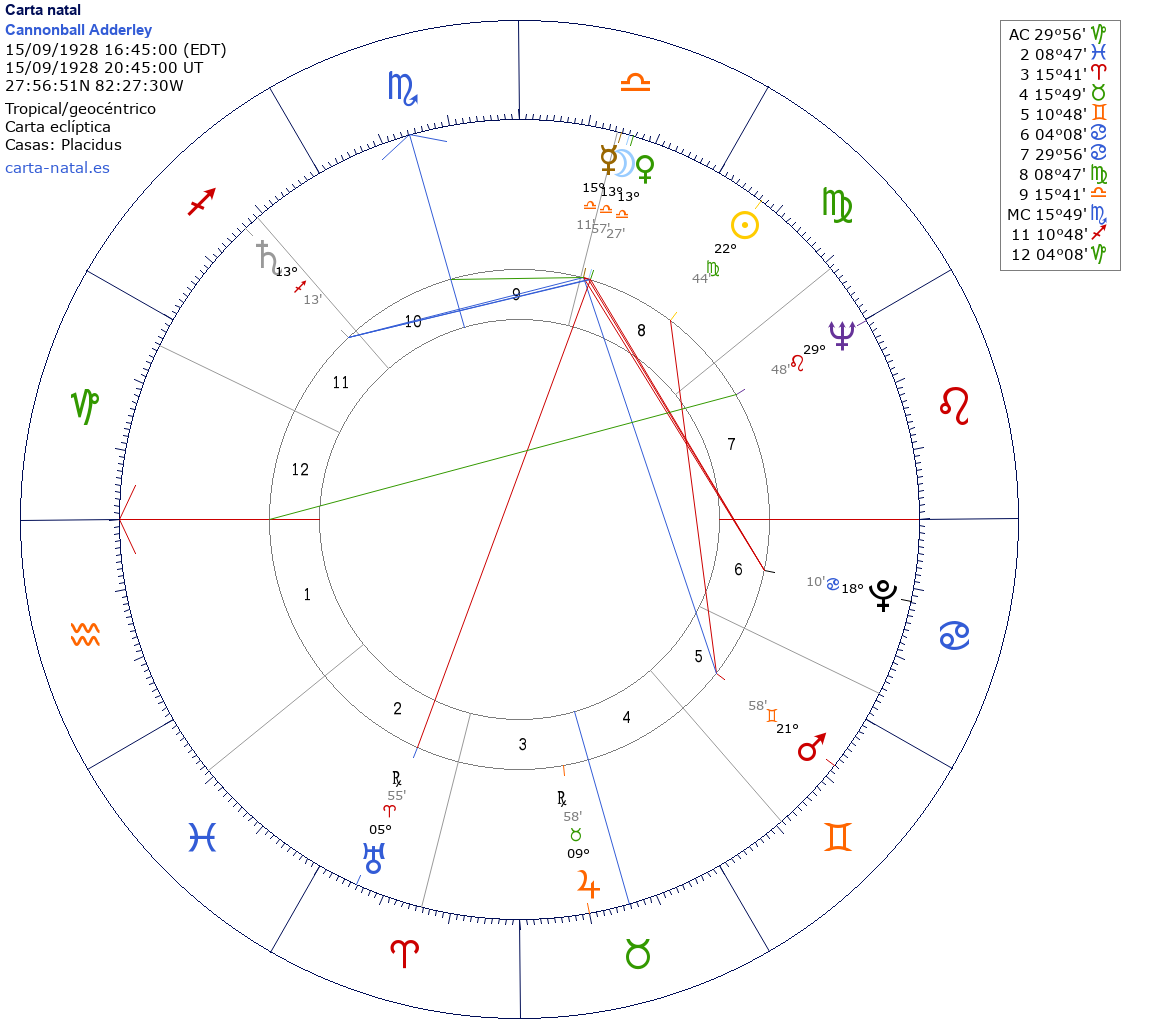 Esta es la carta natal de Cannonball Adderley, saxofonista
