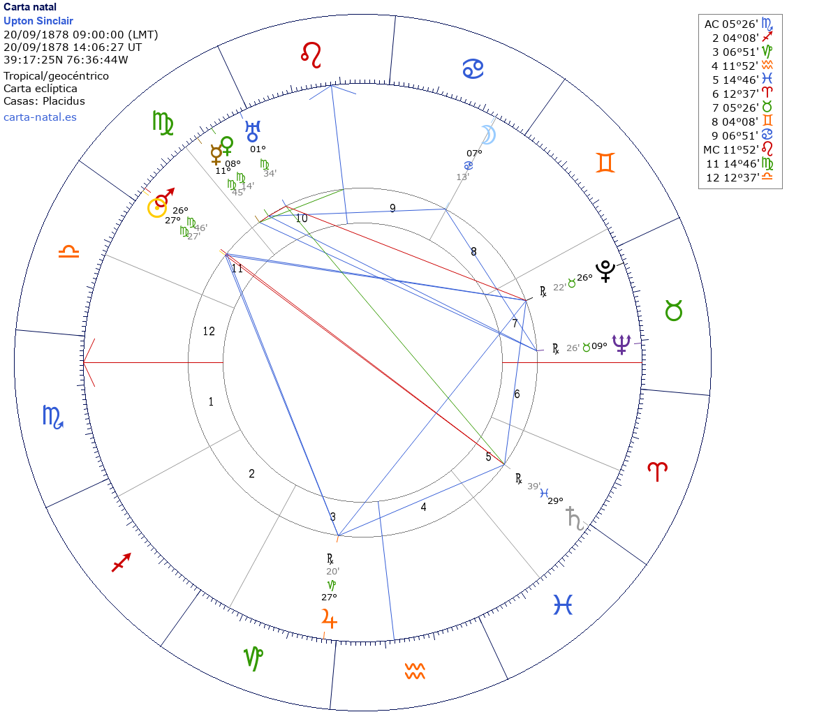 Esta es la carta natal de Upton Sinclair, escritor estadounidense.