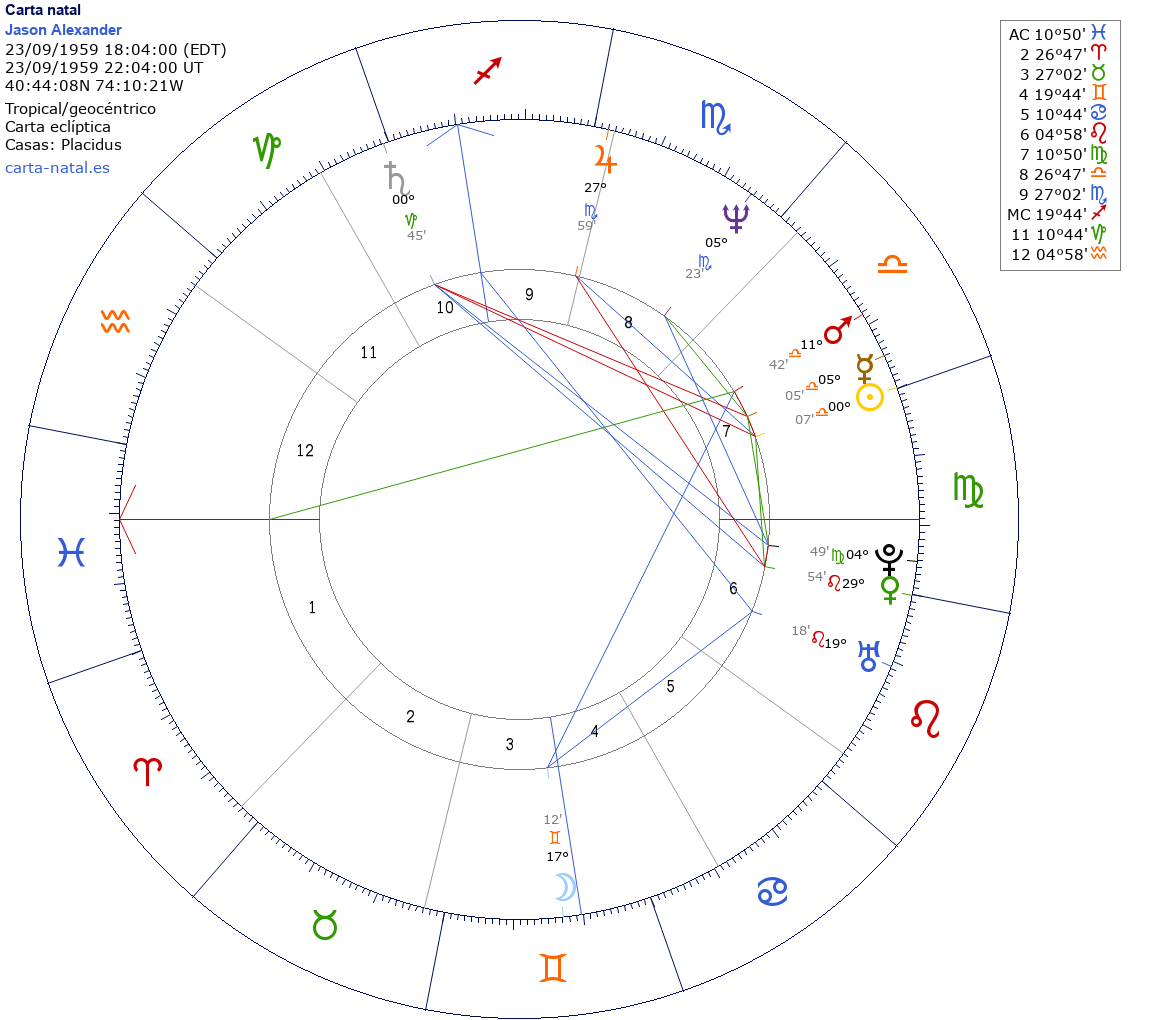 Esta es la carta natal de Jason Alexander, actor estadounidense.