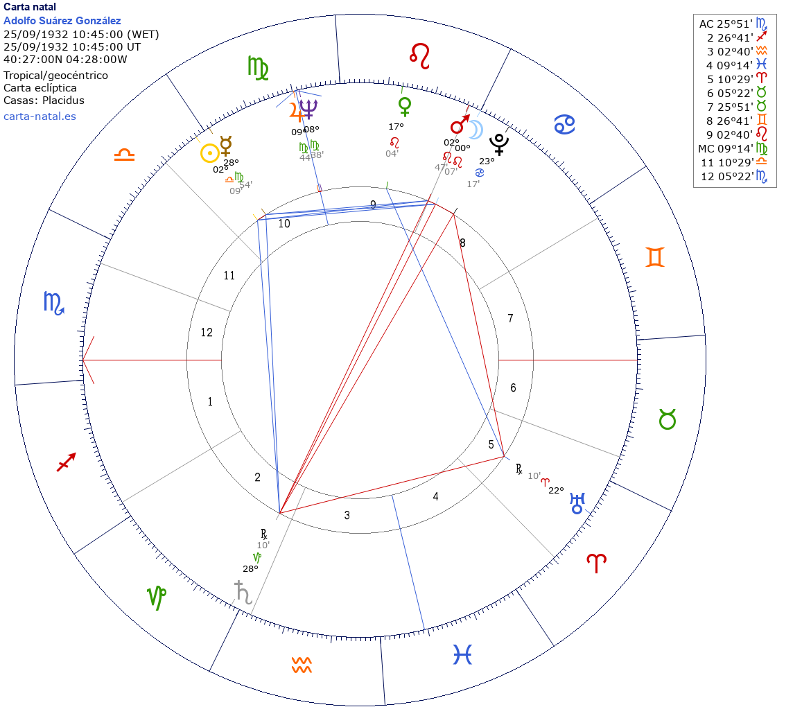 Adolfo Suárez González nació el 25 de Septiembre de 1932 a las 10:45:00 en Cebreros (Ávila), España