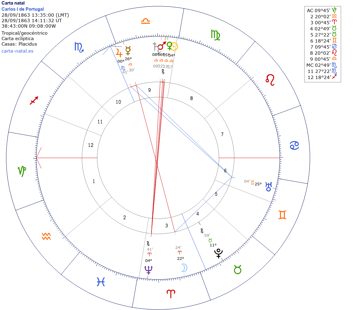 Esta es la carta natal de Carlos I, rey de Portugal.