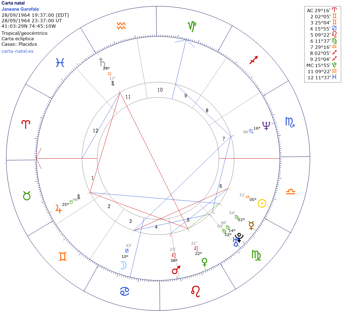 Esta es la carta natal de Janeane Garofalo, actriz y comediante estadounidense.