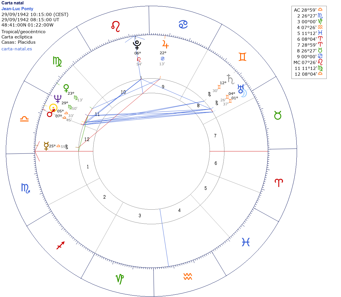 Esta es la carta natal de Jean-Luc Ponty, violinista francés.