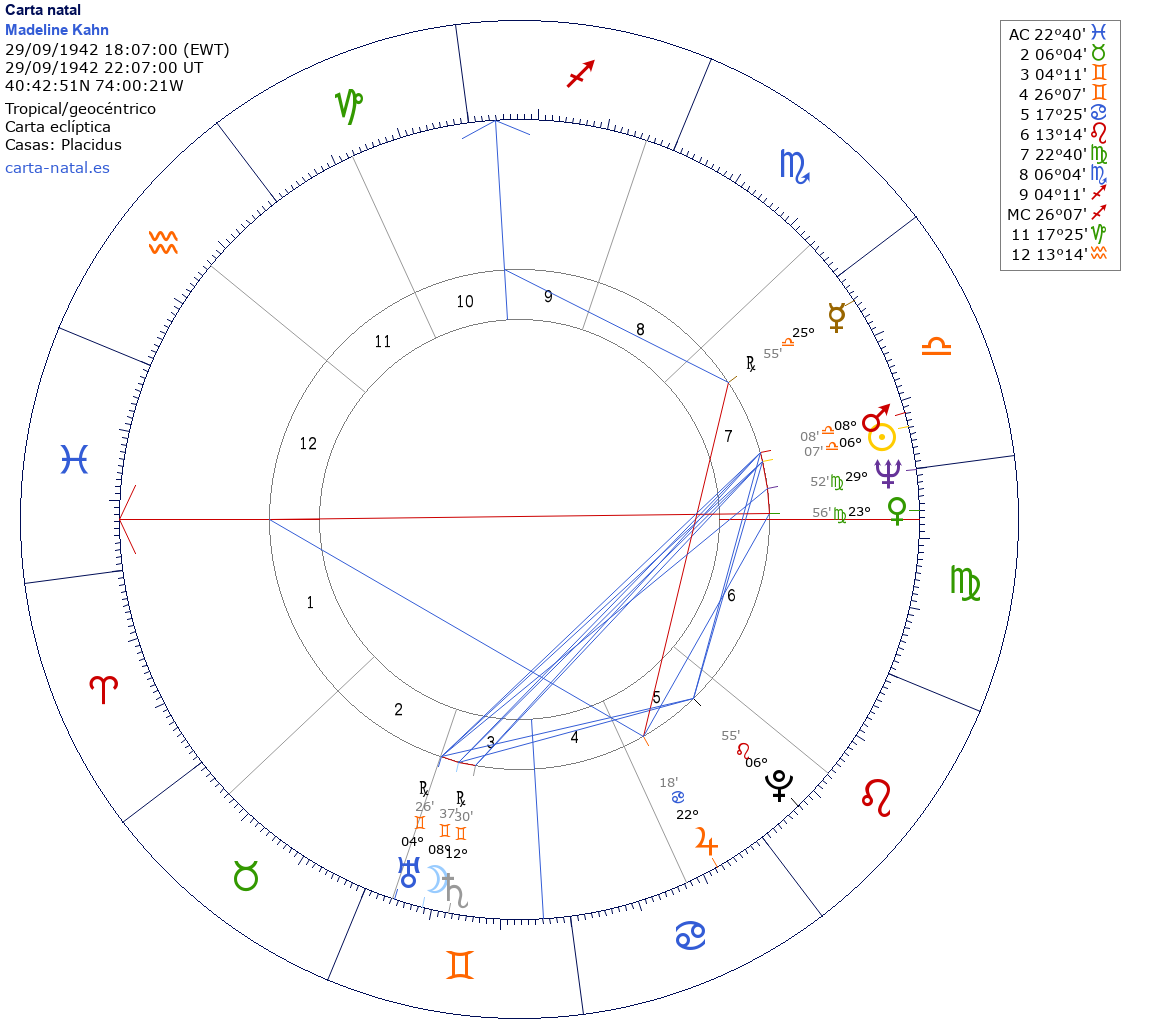 Esta es la carta natal de Madeline Kahn, actriz estadounidense.
