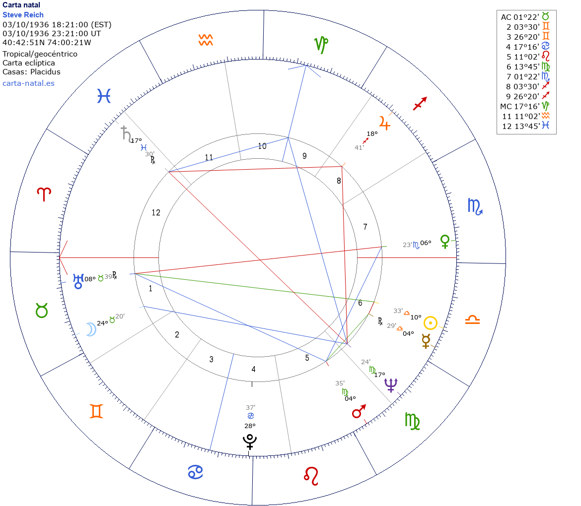 Esta es la carta natal de Steve Reich, compositor estadounidense.