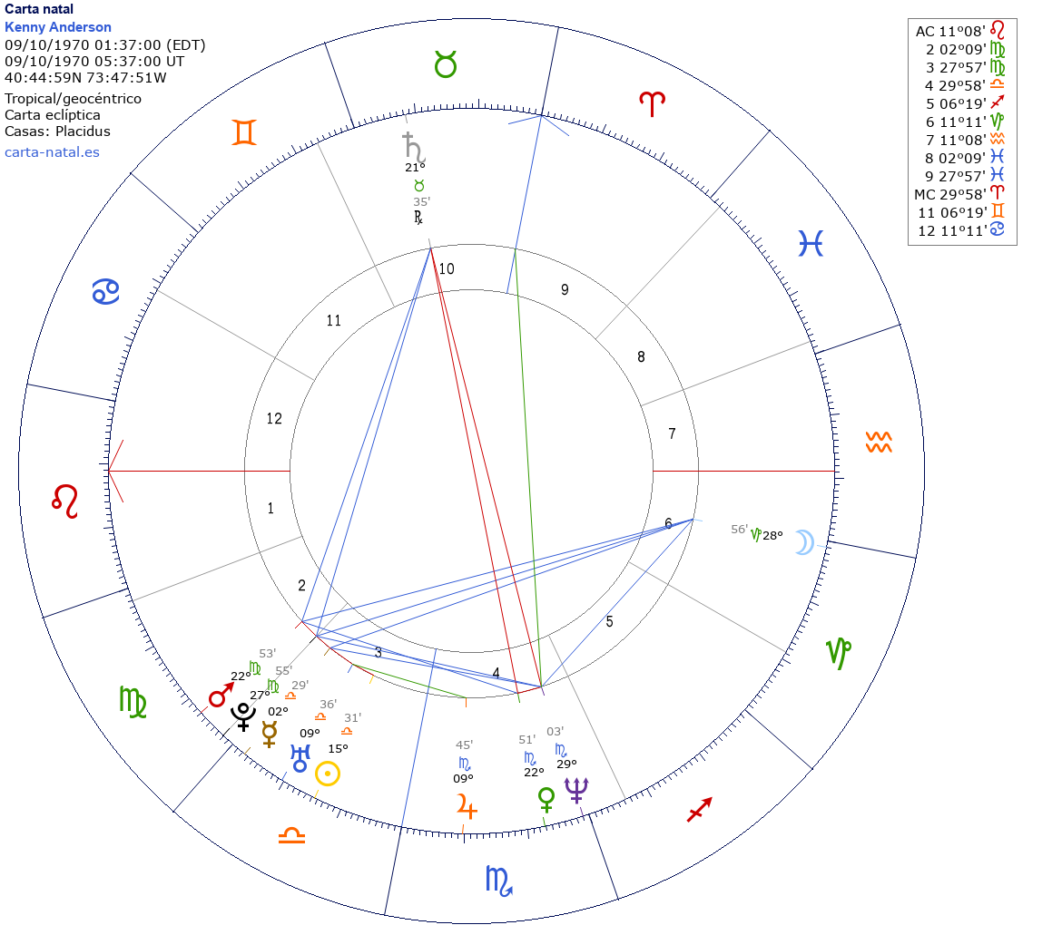 Esta es la carta natal de Kenny Anderson, baloncestista estadounidense.
