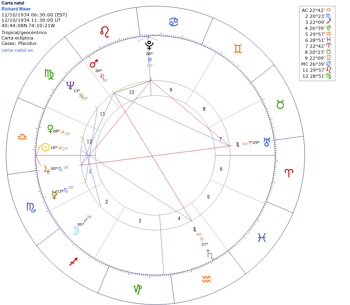 Esta es la carta natal de Richard Meier, arquitecto estadounidense.