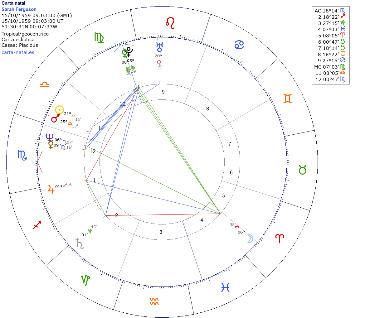 Esta es la carta natal de Sarah Ferguson, duquesa de York.
