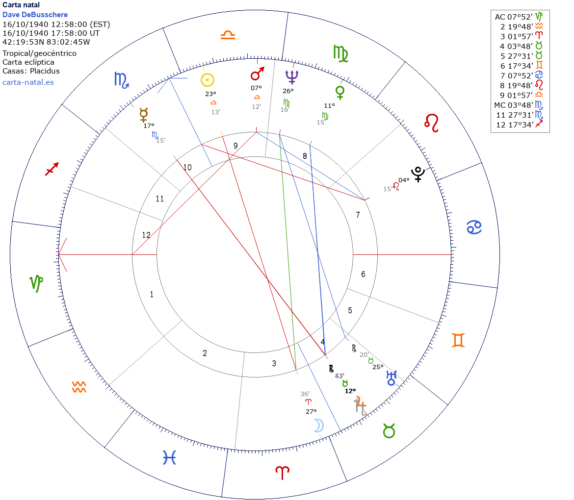Dave DeBusschere nació el 16 de Octubre de 1940 a las 12:58:00 en Detroit (Wayne MI), Estados Unidos