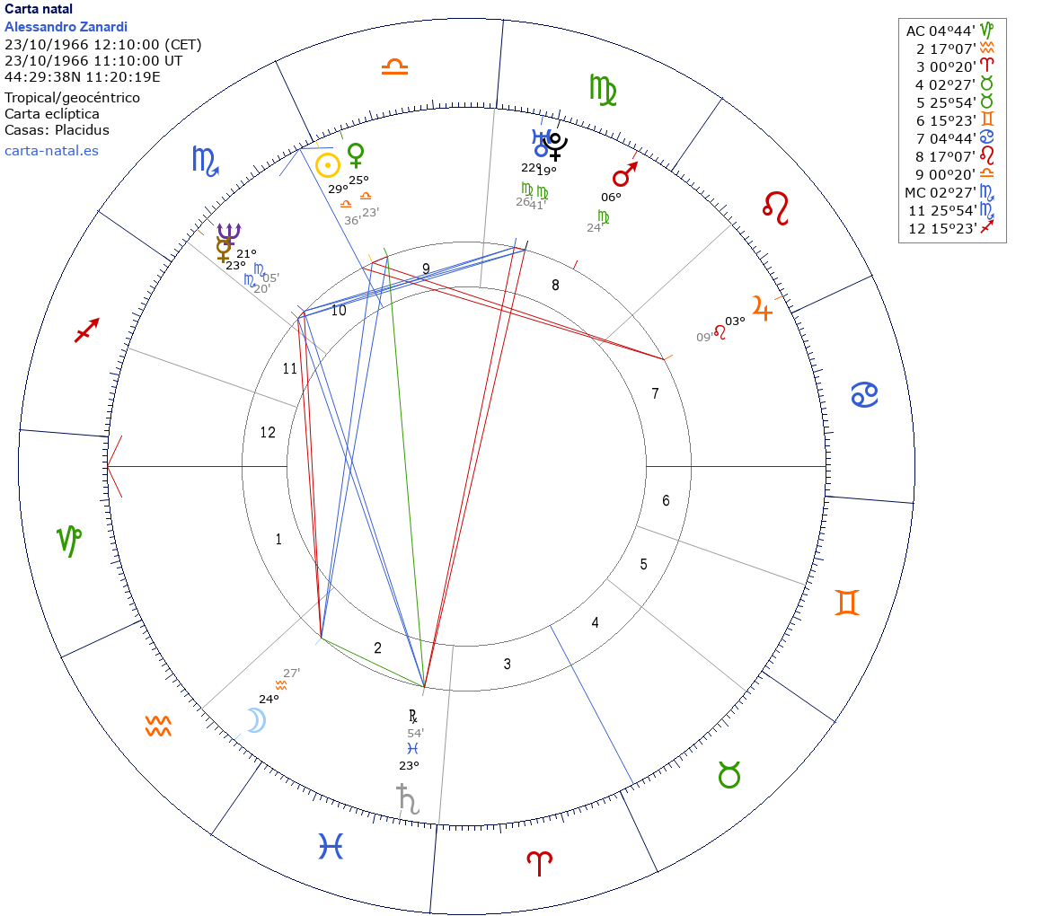 Esta es la carta natal de Alessandro Zanardi, piloto de carreras italiano.