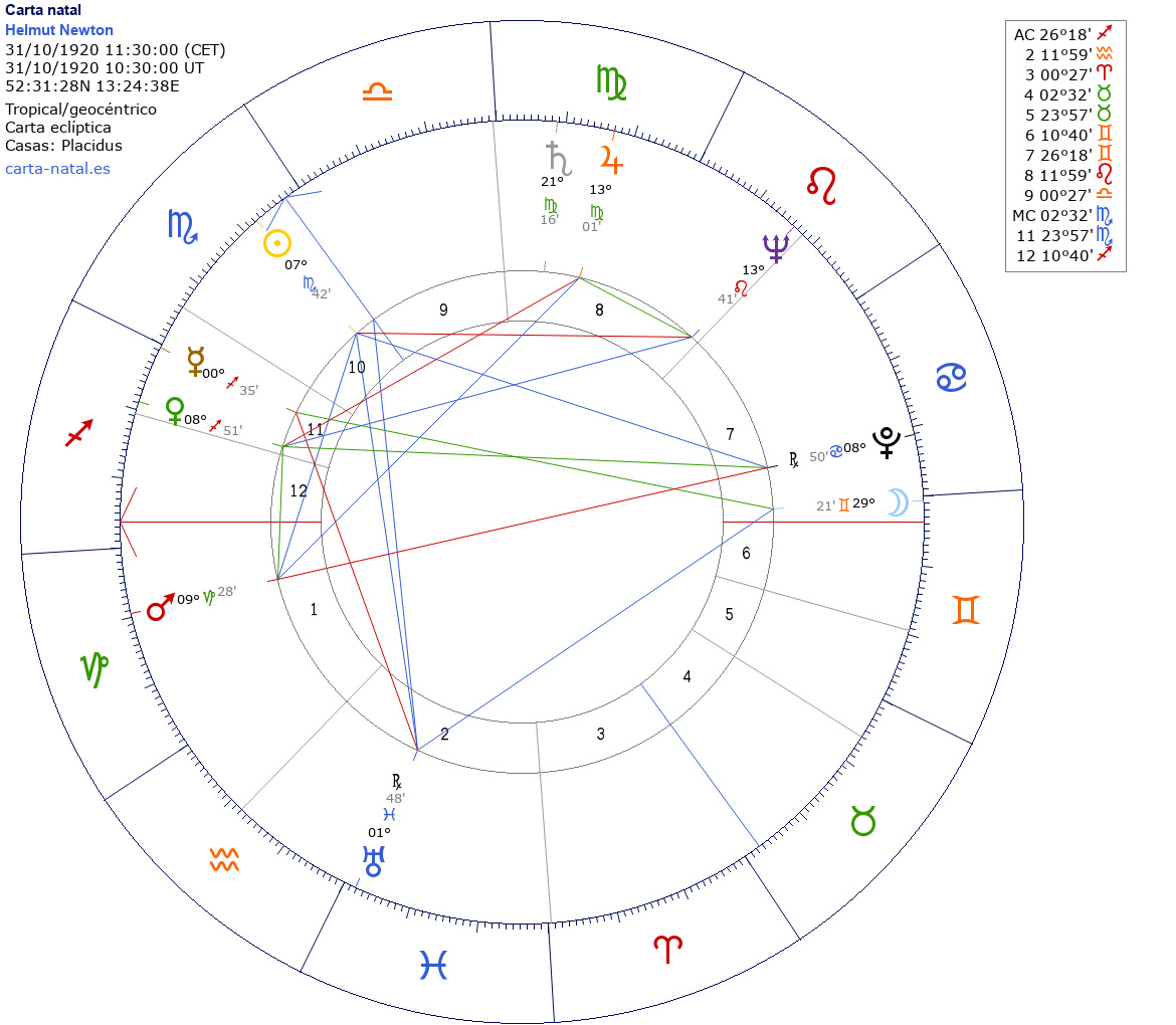 Esta es la carta natal de Helmut Newton, fotógrafo alemán.