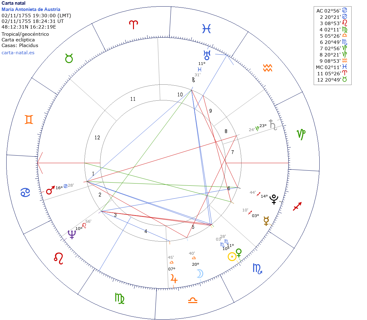 María Antonieta de Austria nació el 2 de Noviembre de 1755 a las 19:30:00 en Vienna (Vienna), Austria