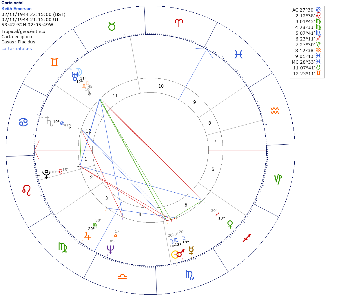 Esta es la carta natal de Keith Emerson, músico británico (Emerson, Lake & Palmer).