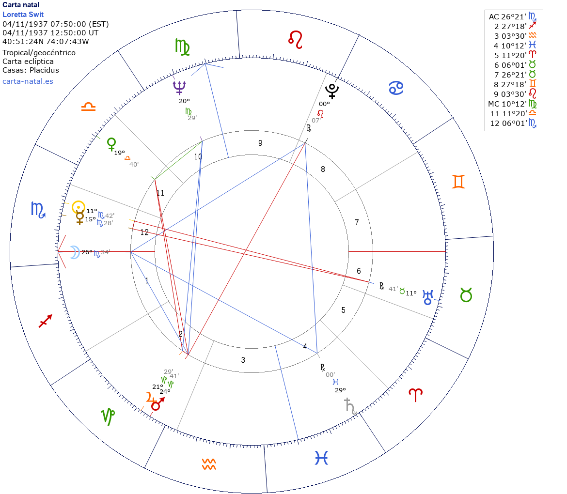 Esta es la carta natal de Loretta Swit, actriz estadounidense.