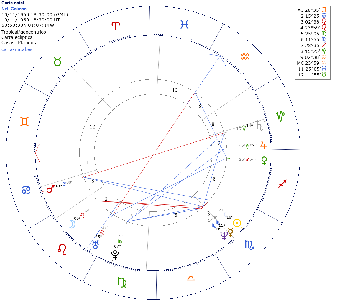 Esta es la carta natal de Neil Gaiman, historietista y escritor inglés.