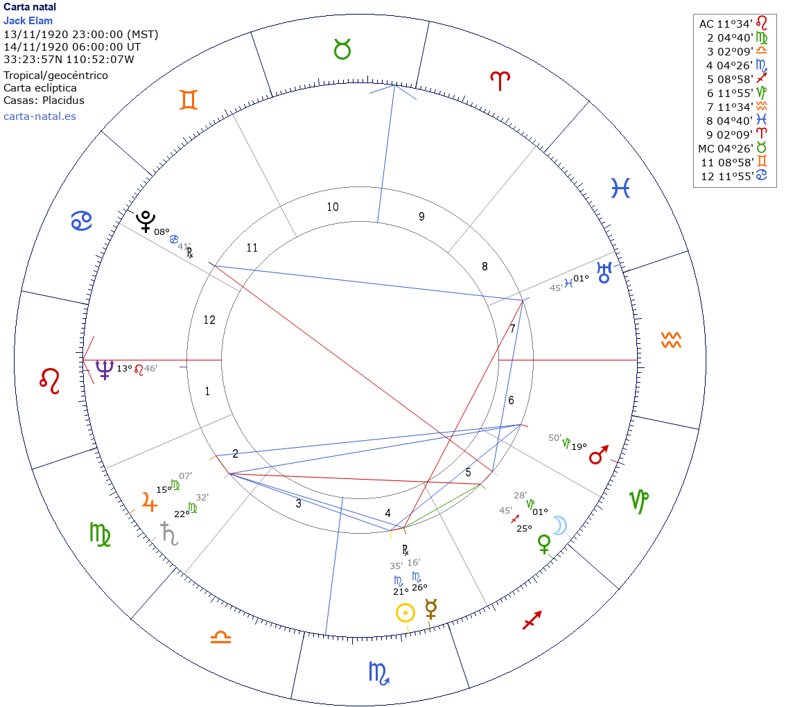 Esta es la carta natal de Jack Elam, actor estadounidense.