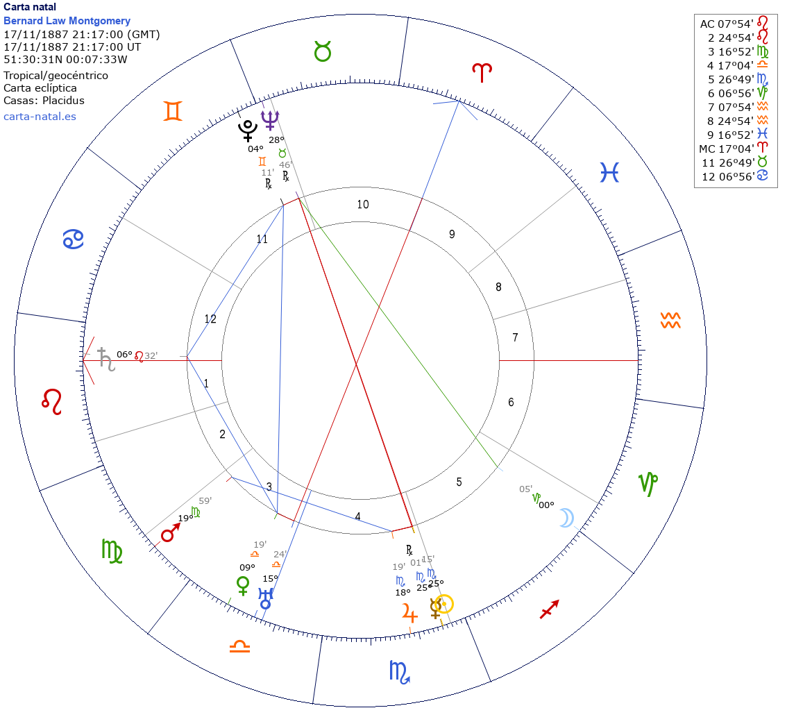 Esta es la carta natal de Bernard Law Montgomery, comandante británico.