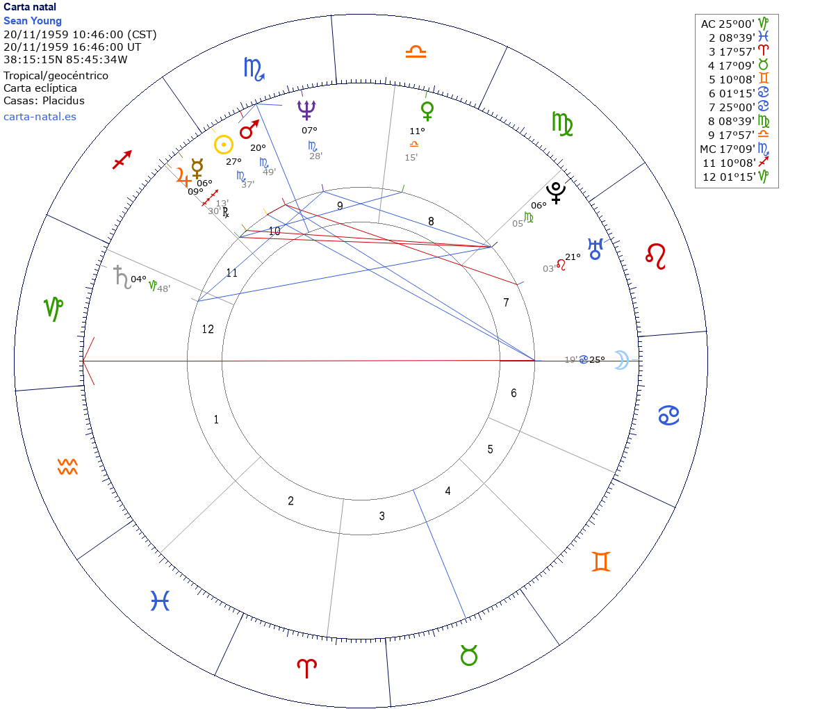 Esta es la carta natal de Sean Young, actriz estadounidense.