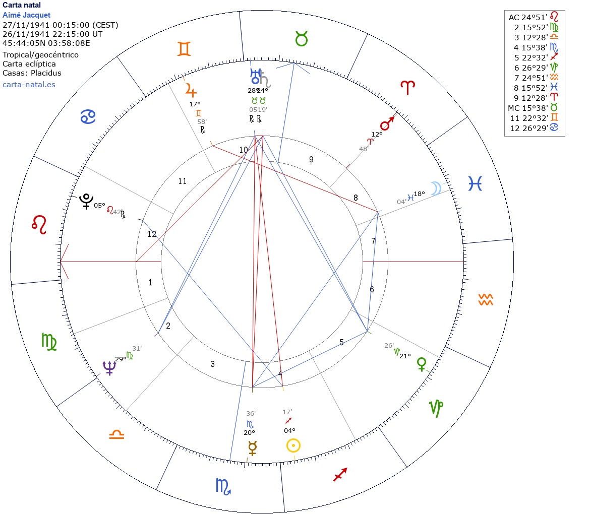 Aimé Jacquet nació el 27 de Noviembre de 1941 a las 00:15:00 en Sail-sous-Couzan (Ródano-Alpes), Francia